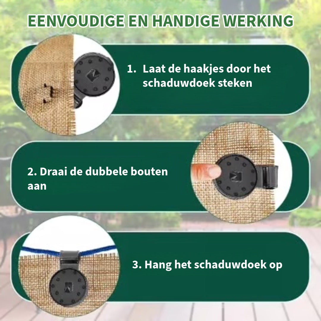 Nooit meer losgeraakte schaduwdoeken of weggewaaide netten