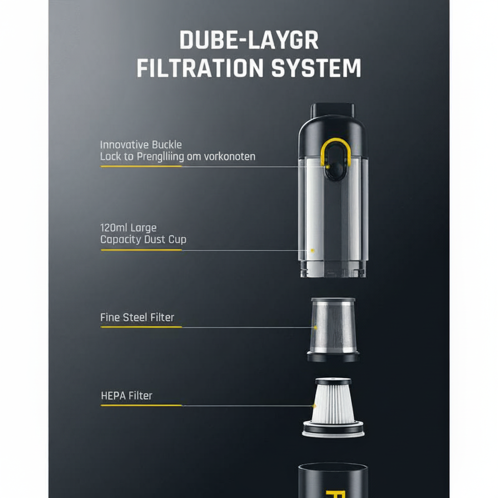 Compact, Draagbaar en Snel Opgeladen Het slanke en draagbare ontwerp maakt het mogelijk om de stofzuiger gemakkelijk op te bergen in uw dashboardkastje of deurvak. Een groot voordeel is de 2 uur snellaadfunctie, waardoor uw stofzuiger altijd klaar is voor gebruik wanneer u hem nodig heeft. Het eenvoudig te legen stofreservoir en wasbare filter maken het onderhoud snel en hygiënisch, wat dit de ultieme, gebruiksvriendelijke reiniger maakt voor elke auto.