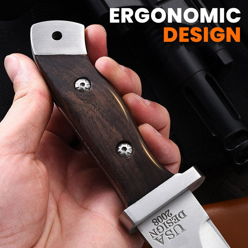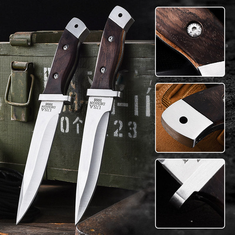 Premium Materialen: Het mes heeft een houten handvat en een 5CR13 roestvrijstalen lemmet, dat duurzaam en corrosiebestendig is. Het ontwerp uit één stuk zorgt voor een gelijkmatige krachtverdeling en voorkomt breuk tijdens gebruik.
