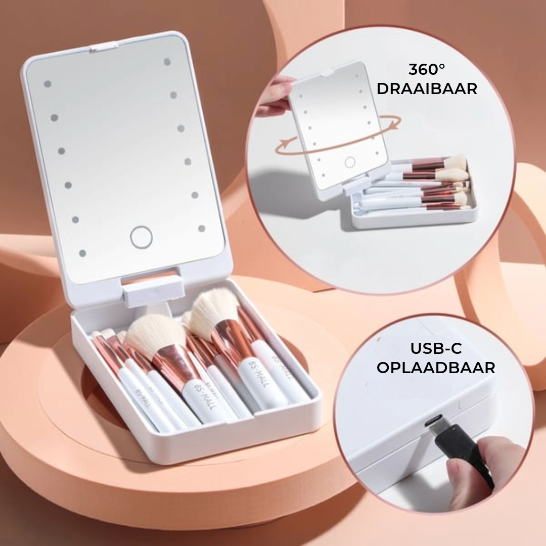 Dankzij de geïntegreerde LED-spiegel in onze reisetui zie je elk detail, zelfs bij weinig licht. Ideaal voor snelle touch-ups onderweg, op vakantie of op het werk. Geen zorgen meer over make-up in slecht verlichte ruimtes – jij straalt altijd, overal.