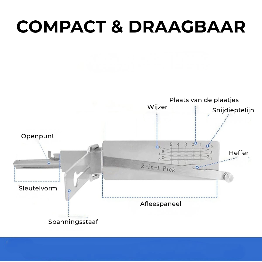 - Intuïtieve bediening zorgt ervoor dat iedereen, ongeacht ervaring, elk slot snel en effectief kan openen