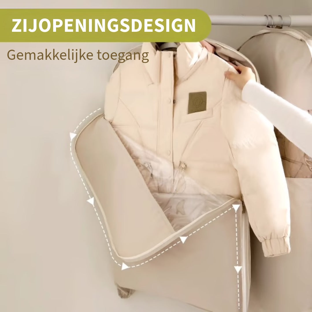 In tegenstelling tot gewone opbergzakken die vervormen, lekken of moeilijk te sluiten zijn, biedt deze kledinghoes een georganiseerde, luchtdoorlatende en slimme opbergoplossing.