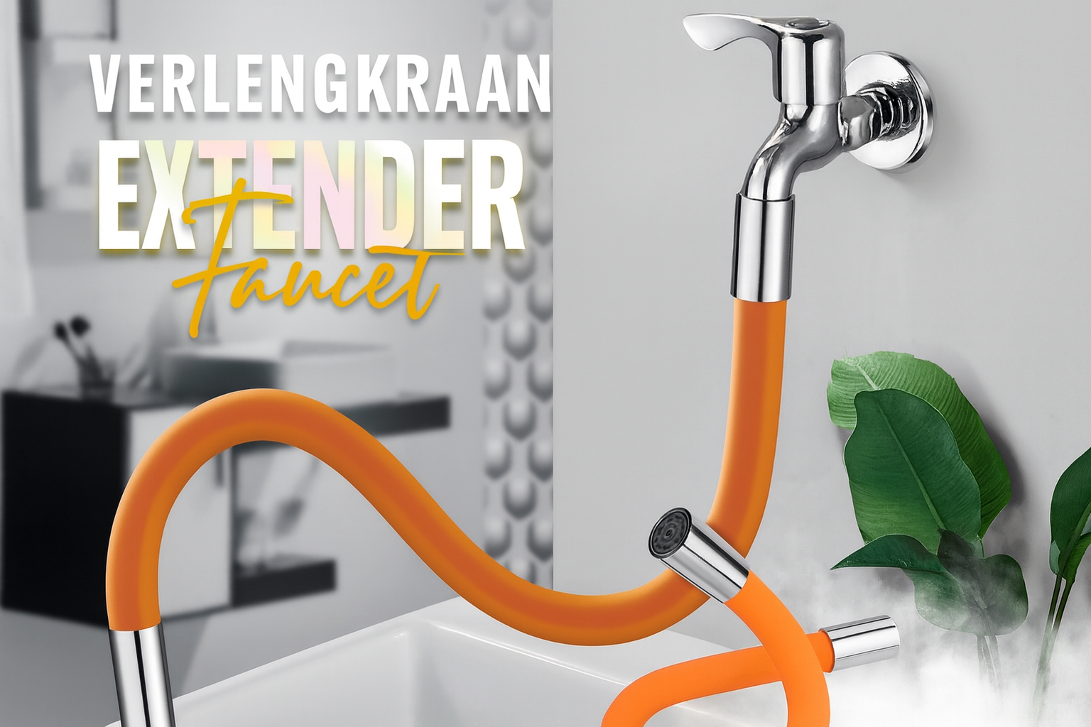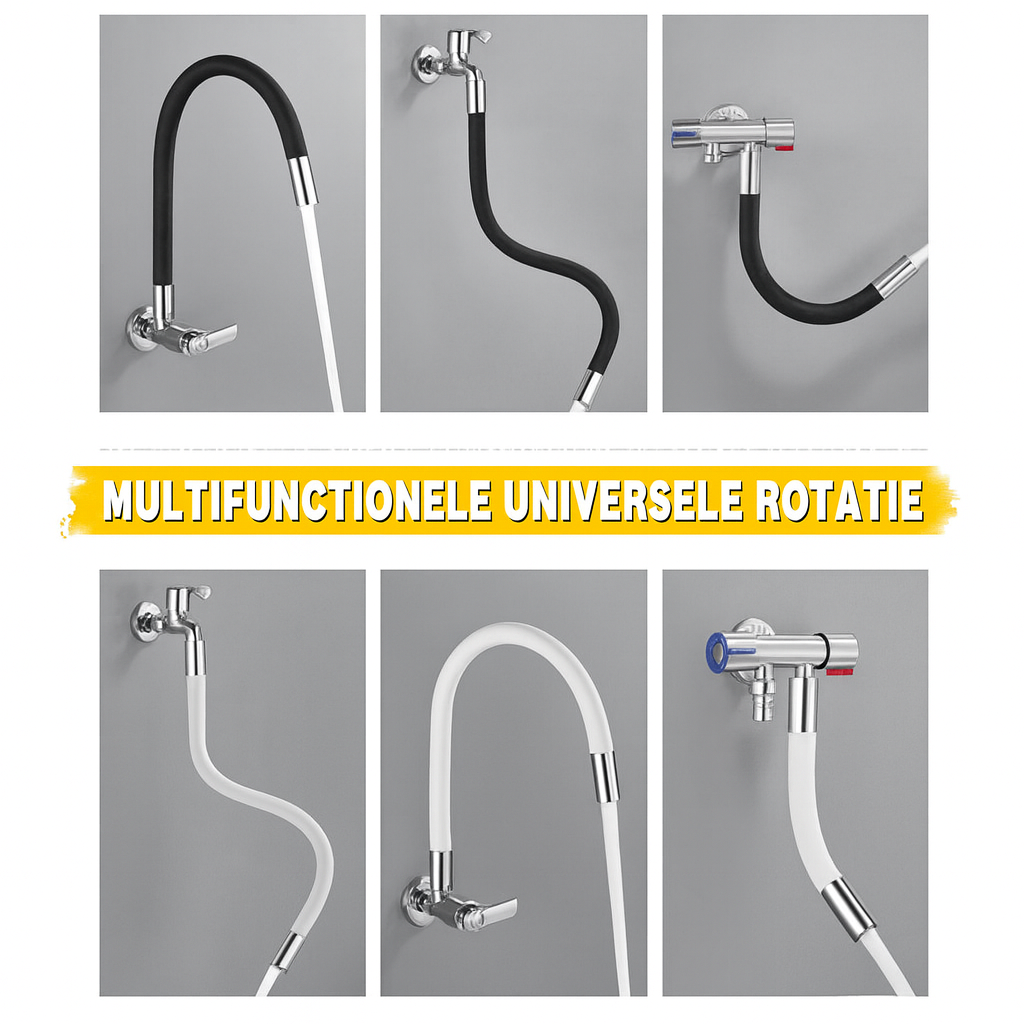 Bereik Elke Hoek met 360° Flexibiliteit Maak schoonmaken in en rond de gootsteen eenvoudiger dan ooit. Deze kraanverlenger is 360° volledig draaibaar en kan in elke richting worden gebogen, waardoor u de volledige controle heeft over de waterstraal. Het vergroot het bereik van uw kraan aanzienlijk, wat ideaal is voor het afspoelen van grote pannen en schalen of het reinigen van de hele wasbak met maximale flexibiliteit.
