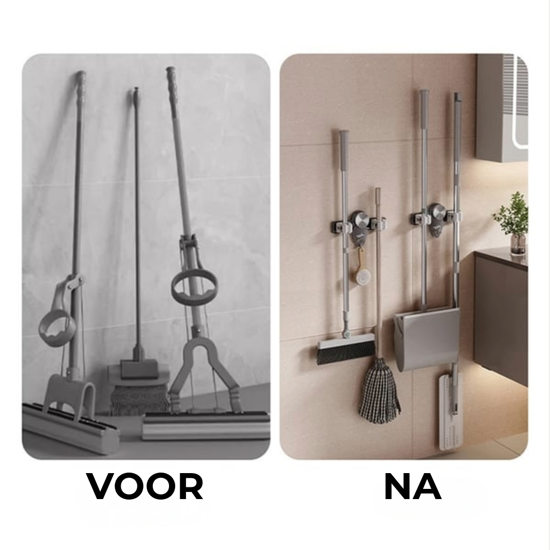 Geen rommelige hoekjes meer! Deze houder zorgt ervoor dat je bezems, stofblikken en meer overzichtelijk worden opgeborgen, zodat je huis altijd netjes oogt.