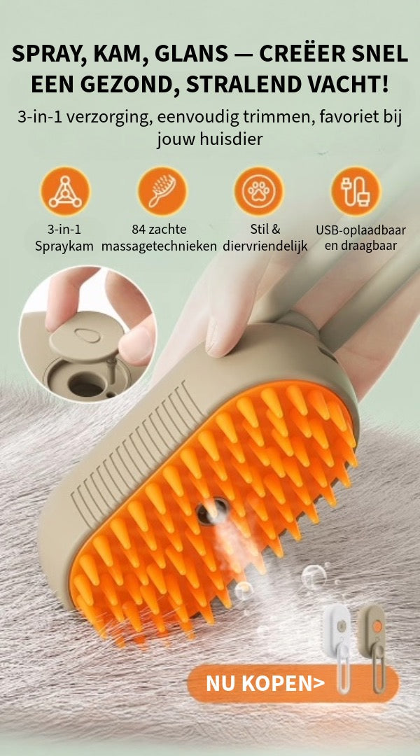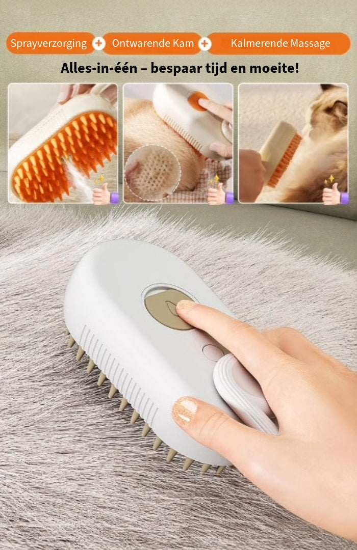 Met de Stoomkam geniet je van stressvrije bonding-momenten, zonder dat haren alle kanten op vliegen. De 3-in-1 functionaliteit – borstelen, masseren en sprayen – maakt het niet alleen handig, maar ook kostenbesparend. Waar je ook bent, de stille werking zorgt voor een rustgevende ervaring, zowel voor jou als je huisdier.