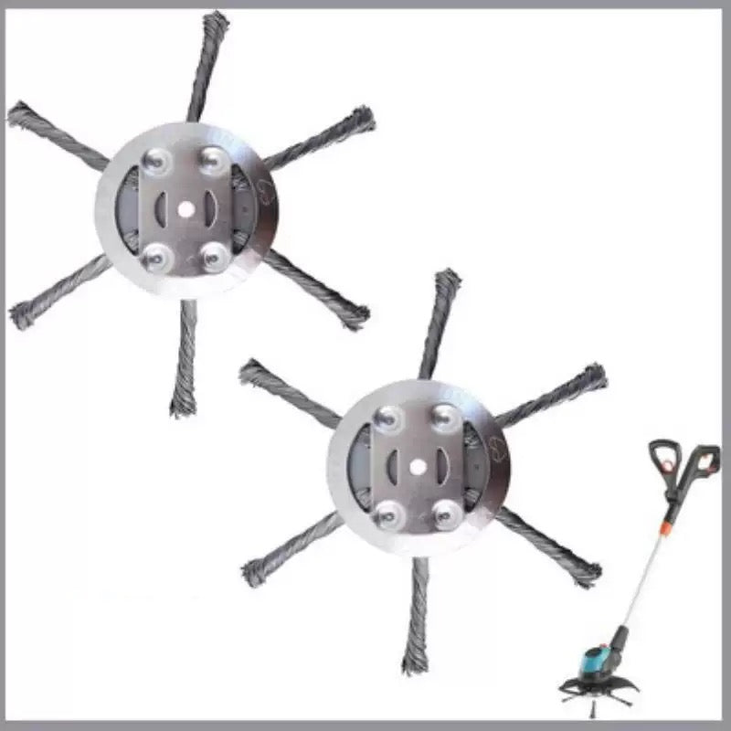 Deze roterende trimmerkop van 6 inch is uitgerust met stevige staaldraadborstels, ideaal voor het verwijderen van onkruid, mos en zelfs roest. Een effectieve vervanging voor traditionele snijdraad.