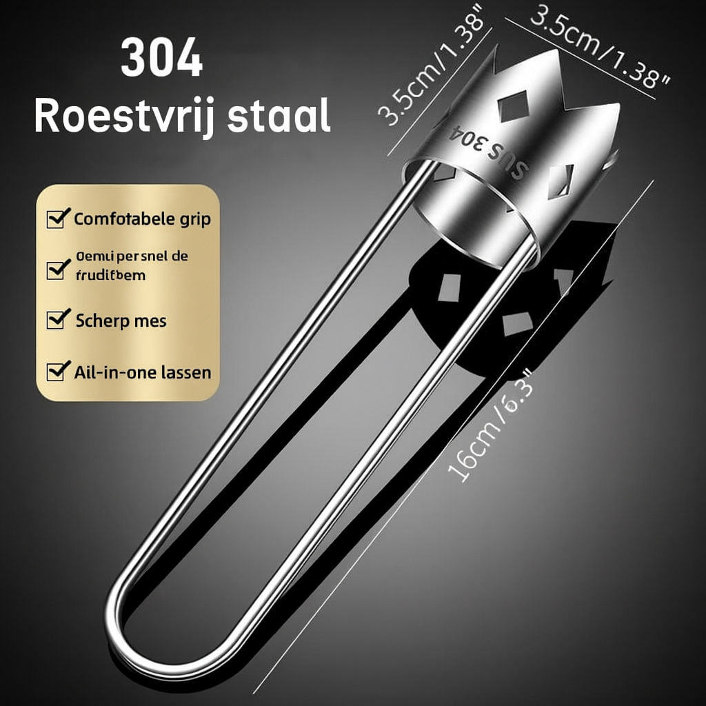 Verwijder Klokhuizen Moeiteloos en Perfect Dankzij de vlijmscherpe gekartelde bladen van deze kernverwijderaar glijdt u moeiteloos door het klokhuis van appels, peren en ander fruit. De tool zorgt voor een schone en snelle verwijdering met minimale inspanning, waardoor u een perfect resultaat behaalt zonder het fruit te beschadigen. Ideaal voor het bereiden van snacks, taarten of salades.