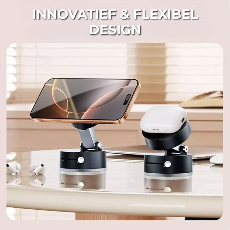 Dankzij de revolutionaire vacuümtechnologie bevestig en verwijder je je telefoon in een handomdraai. De dubbele as maakt het mogelijk om de houder in te klappen, uit te schuiven en perfect af te stellen voor elke situatie.