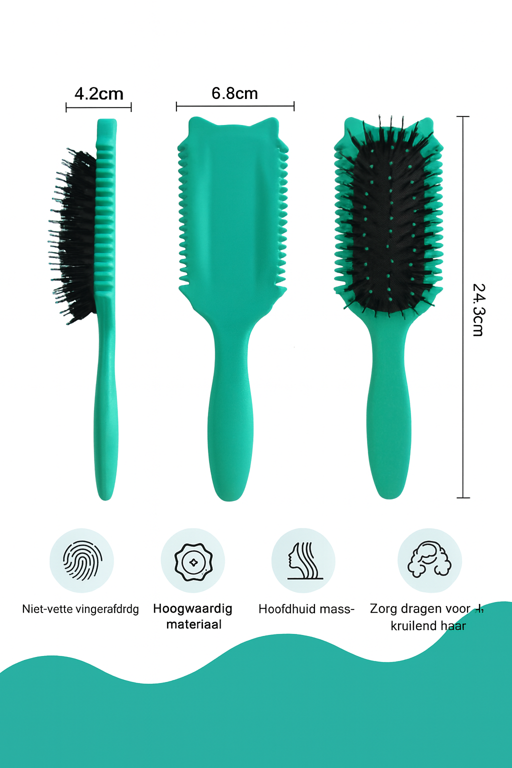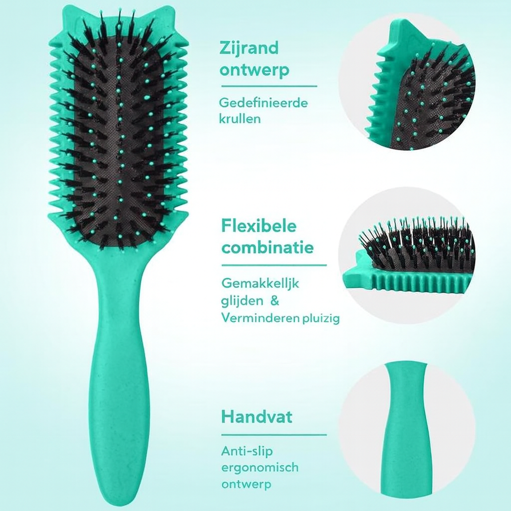 De Curl Defining Comb met speels kattenoorontwerp is niet alleen stijlvol, maar ook praktisch. Een must-have accessoire dat je haarverzorgingsroutine nét dat beetje leuker maakt.